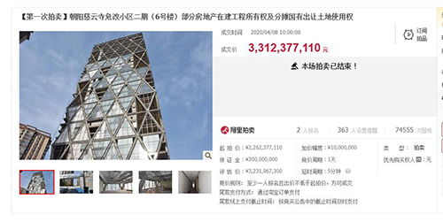 4月8日,在15次競價之后,引發(fā)超7萬次圍觀,2方報名的中弘大廈拍賣最終落槌。北京植晟云廈物業(yè)管理有限公司通過競買號M1691報價33.12億元,溢價10.5億元拍得中弘大廈。 ...