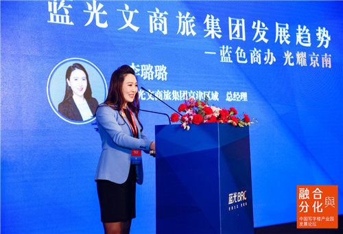 熱烈掌聲有請(qǐng)藍(lán)光文商旅集團(tuán)京津區(qū)域總經(jīng)理 李璐璐女士 做主題演講。演講題目是:藍(lán)光文商旅集團(tuán)發(fā)展趨勢(shì)。