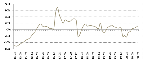 1-9月份,64個三四線城市居住用地成交面積為19676萬平方米,同比增長20.8%。三四線城市的地市交易比預(yù)期的好,前9月增速是2019年2月份以來的最高水平。部分全國化布局的房企依然看好核心三四線城市,依然會加快拿地節(jié)奏。需要注意,10月份徐州、紹興等地加碼調(diào)控,房企拿地要防范政策收緊風(fēng)險。