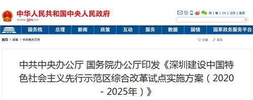 房訊網(wǎng)訊 近日,中共中央辦公廳、國(guó)務(wù)院辦公廳印發(fā)了《深圳建設(shè)中國(guó)特色社會(huì)主義先行示范區(qū)綜合改革試點(diǎn)實(shí)施方案(2020-2025年)》,支持在土地管理制度上深化探索。
