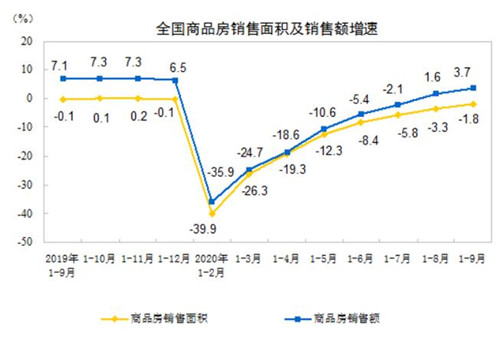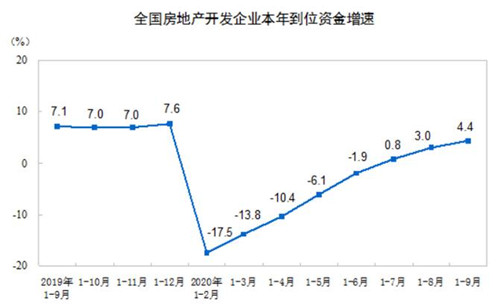 國家統(tǒng)計局19日發(fā)布的數(shù)據(jù)顯示,9月,房地產(chǎn)開發(fā)投資、銷售、到位資金等多指標累計增速連續(xù)7個月反彈,其中,開發(fā)投資連續(xù)4個月正增長,銷售額連續(xù)2個月正增長,房企到位資金連續(xù)3個月正增長。