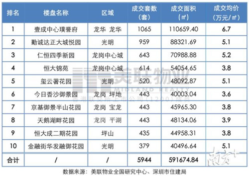 從成交個盤來看,今年三季度,全市二手住宅成交TOP10中,龍崗大運片區(qū)的中?党且189套/16291.72㎡的成交量位居榜首。從區(qū)域入榜項目分布來看,龍崗區(qū)擁有絕對的優(yōu)勢,占得前十個盤中的8席,剩余龍華和福田各1個項目入榜。