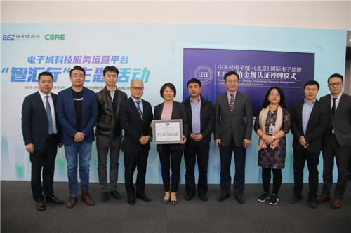 2020年11月19日, "中關(guān)村電子城·(北京)國際電子總部項目LEED鉑金級認(rèn)證授牌儀式"在中關(guān)村電子城·(北京)國際電子總部圓滿舉行;顒佑擅绹G色建筑委員會(USGBC)(以下簡稱"綠建委")、CBRE世邦魏理仕、北京電子城有限責(zé)任公司聯(lián)合舉辦。