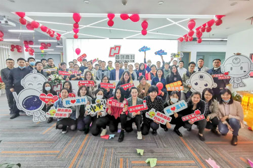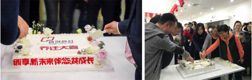 儀式上,首創(chuàng)高科總經(jīng)理裴濬發(fā)表致辭,為新辦公區(qū)揭牌,并與所有管理層一起切蛋糕慶祝喬遷之喜。