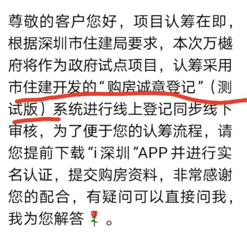 而從“i深圳”APP購房誠意登記過程中的提示可知,該系統(tǒng)的推出是為進一步加強樓盤銷售管理,準確掌握居民購房需求,以達到優(yōu)先滿足無房居民家庭購房的目的。