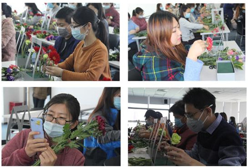 房訊網(wǎng)訊 2020年11月24日,前海人壽大廈花香四溢,芬芳飄滿整棟樓宇。在前海人壽大廈運(yùn)營方和石景山樓宇工作站聯(lián)合組織下,40余位來自大廈企業(yè)員工匯聚在B座6層多功能廳,一起學(xué)習(xí)插花藝術(shù),工作之余放松身心,感受鮮花與花藝帶來的美好享受。