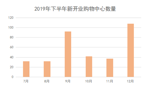 目前,購物中心面臨存量挑戰(zhàn),不少開發(fā)商在購物中心上的規(guī)劃愈顯謹慎。2019年下半年以來,購物中心的開業(yè)數(shù)量相比上年有所下降。據(jù)觀點指數(shù)統(tǒng)計,2019年下半年以來,全國開業(yè)的購物中心數(shù)量超300家,開業(yè)時間主要集中于9月和12月,12月開業(yè)數(shù)量創(chuàng)下半年新高,為108家。