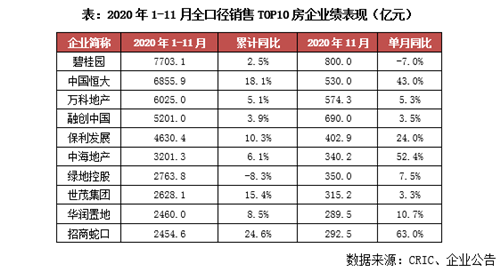 進(jìn)入12月以來,房企陸續(xù)公布前11月的銷售業(yè)績。在全年業(yè)績出爐之前,前11月的業(yè)績就像“摸底”考試,各家房企在2020年表現(xiàn)如何,已初步有了答案。