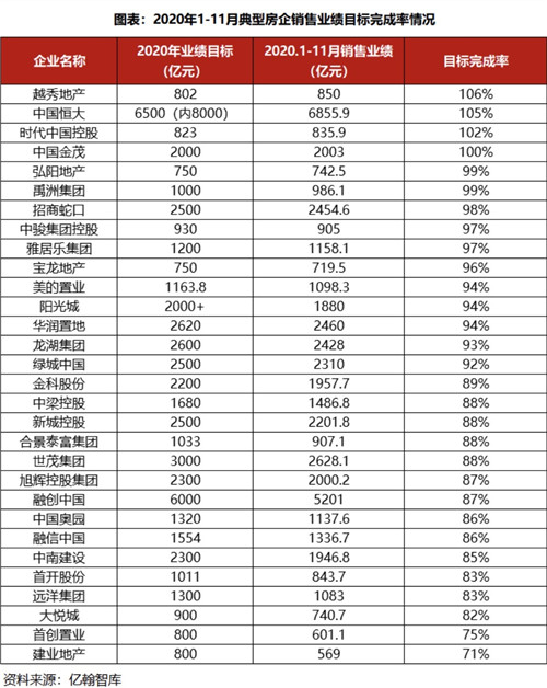 從前11月各家房企的銷售業(yè)績目標(biāo)完成情況來看,典型房企仍然表現(xiàn)出嚴(yán)重分化。