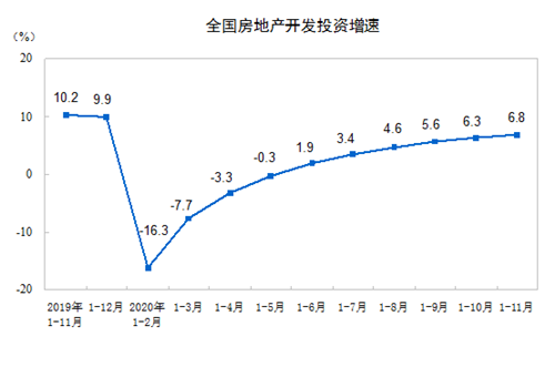 房訊網訊 國家統計局15日發(fā)布數據顯示,1-11月份,全國房地產開發(fā)投資129492億元,同比增長6.8%,增速比1-10月份提高0.5個百分點。其中,住宅投資95837億元,增長7.4%,增速提高0.4個百分點。