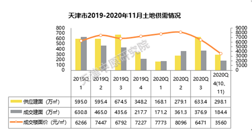圖1:天津市2019-2020年11月土地供需情況