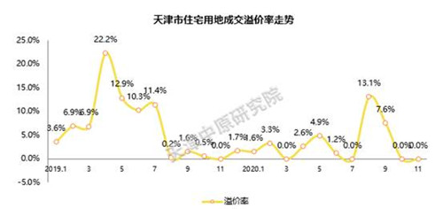 圖3:天津市2019-2020年11月住宅土地溢價(jià)率走勢(shì)