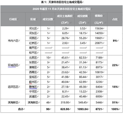 表2:2020年截至11月末住宅土地市場(chǎng)成交格局