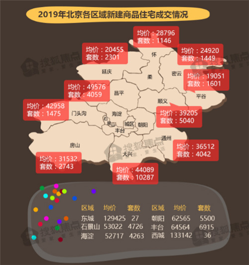 2019年,普通住宅市場成交量激增暴漲,共計30987套新房,分布在北京全部的16個區(qū)里,成交面積同比增加59.3%,成交均價同比下降5.2%,達(dá)到55016元/平。其中,普通住宅市場成交排行榜前三名分別是中海寰宇天下、橡樹瀾灣限競房、中海云熙限競房,成交套數(shù)分別是1509套、1218套、969套。