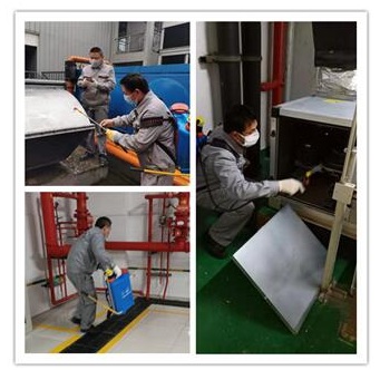 天津遠(yuǎn)洋國(guó)際中心在對(duì)新風(fēng)機(jī)組進(jìn)行清洗消毒