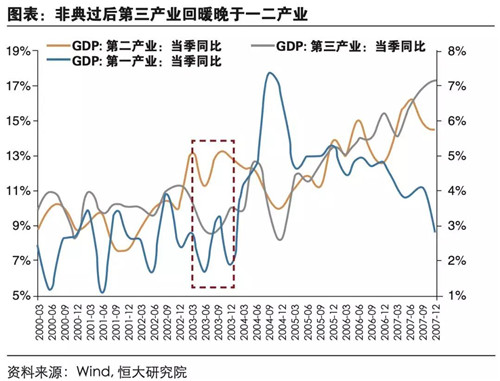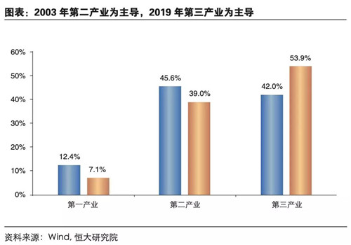 在時(shí)光的長河中迅速回眸,把鏡頭拉回到2003年國內(nèi)SARS疫情期間,整個(gè)中國的旅游業(yè)的損失高達(dá)2768億元。然而,2003年在中國經(jīng)濟(jì)中,第二產(chǎn)業(yè)占比最大,為45.6%,但到了2019年,第三產(chǎn)業(yè)就超越了第二產(chǎn)業(yè),占比已從39%上升到53.9%。因此,此次新型冠狀病毒感染的肺炎疫情對于地產(chǎn)、酒店及旅游業(yè)造成的損失將會更加巨大。