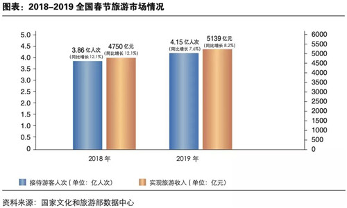 數(shù)據(jù)顯示:2018年春節(jié)假期,全國共接待游客3.86億人次,同比增長12.1%;實(shí)現(xiàn)旅游收入4750億元,同比增長12.6%。2019年春節(jié)假期,全國旅游接待總?cè)藬?shù)4.15億人次,同比增長7.6%;實(shí)現(xiàn)旅游收入5139億元,同比增長8.2%。而今年,超過4.5億人次帶來的旅游收入已“付諸東流”,并夾帶其他相關(guān)成本的損失。