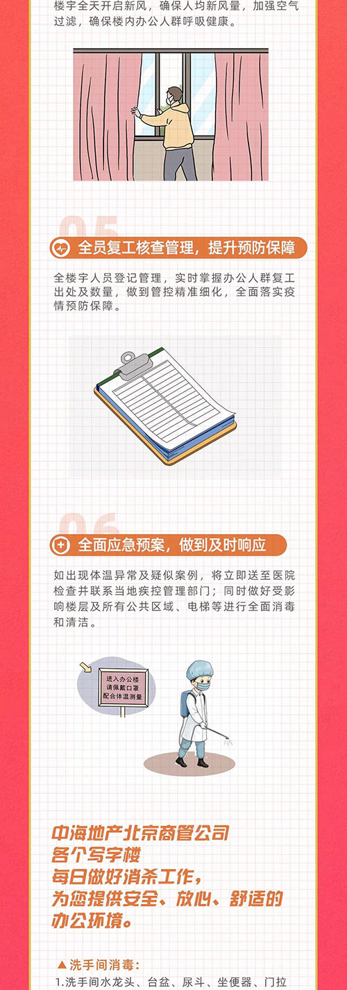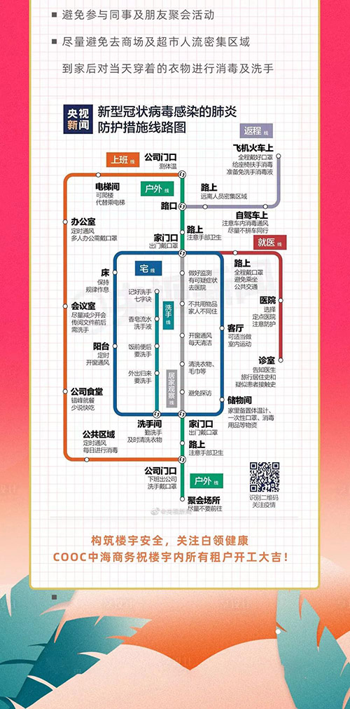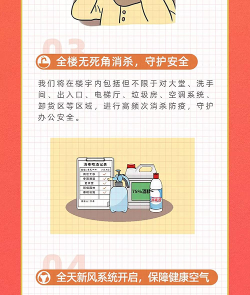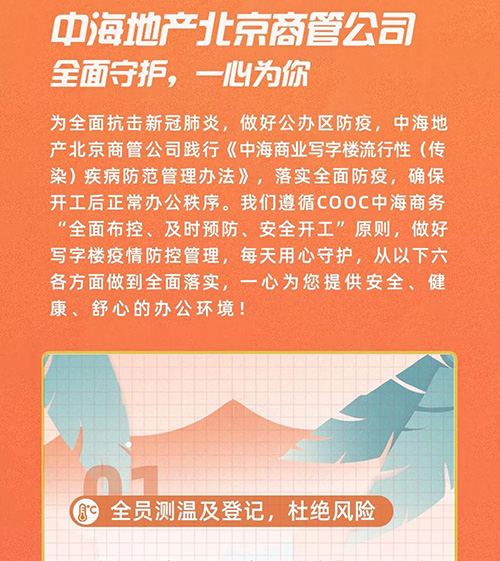 以下為COOC中海商務(wù)華北寫字樓全面防疫、保障復(fù)工的多項(xiàng)舉措。