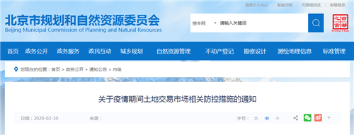 房訊網(wǎng)訊 2月10日,北京市規(guī)劃和自然資源委員會(huì)發(fā)布《關(guān)于疫情期間土地交易市場(chǎng)相關(guān)防控措施的通知》,針對(duì)疫情期間的土地市場(chǎng)交易制定六項(xiàng)工作措施。