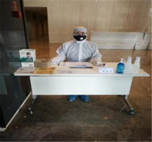 卡口測溫處配備84消毒液、75%酒精、免洗洗手液、一次性口罩等防疫物品,供來廈人員使用。每一個卡口嚴格按照流程操作,絕不漏過、錯放過任何一個隱患點。