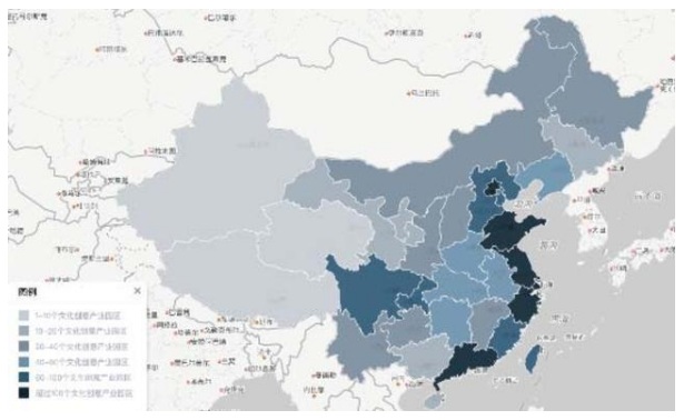 圖片來源:《中國文化創(chuàng)意產(chǎn)業(yè)集聚區(qū)分布圖2019》
