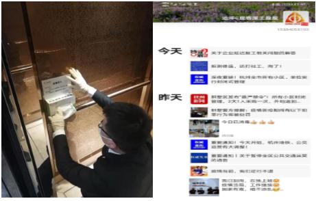 為了讓客戶放心乘坐電梯,轎廂消毒后會標記已消毒提示;客服每日推送防護措施及疫情情況,讓客戶第一時間掌握杭州疫情的最新動態(tài)。