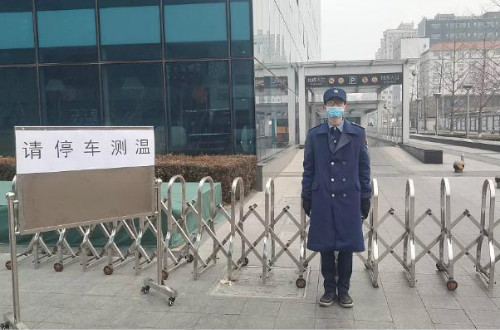 有序安檢,減少客戶排隊(duì)。每天上班高峰時(shí)段,項(xiàng)目全體管理人員均在大廈門前、車庫入口進(jìn)行測(cè)溫、登記、引導(dǎo),同時(shí)使用紅外測(cè)溫槍、熱成像測(cè)溫儀等設(shè)備,減少客戶排隊(duì)等候時(shí)間,保證既有效管控人員進(jìn)出,又不影響客戶辦公。
