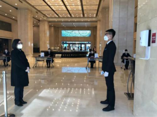 為保證大廈內(nèi)客戶的健康與安全,環(huán)球貿(mào)易中心將寫字樓部分與喜來登酒店、環(huán)貿(mào)國際公寓、環(huán)貿(mào)新生活,根據(jù)自身業(yè)態(tài)實(shí)行物理分隔,分區(qū)域進(jìn)行管控,減少人員聚集、流動(dòng),最大限度的保證客戶安全,保證大廈客戶穩(wěn)妥有序復(fù)工。