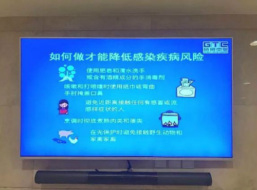 為更好的保證客戶安全,在電梯內(nèi)、公共區(qū)域等多媒體上,及時(shí)跟進(jìn)、宣傳防疫措施及注意事項(xiàng),提醒員工及客戶做好防護(hù),引導(dǎo)大家齊心協(xié)力,共戰(zhàn)“疫”情。