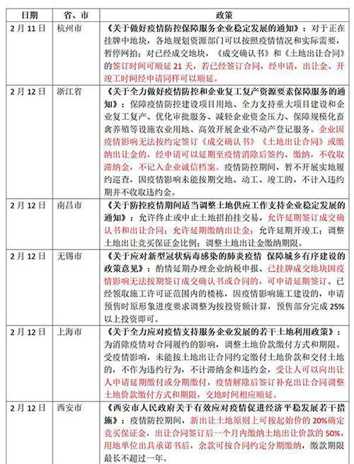 據(jù)不完全統(tǒng)計(jì),截至目前,已有無(wú)錫、廈門、衡陽(yáng)、福州等地相繼出臺(tái)政策支持房地產(chǎn)市場(chǎng)平穩(wěn)健康發(fā)展。此外,濟(jì)南、西安、杭州、上海、天津、南昌、南京、浙江等省市出臺(tái)土地新政應(yīng)對(duì)疫情,部分城市明確土地款可申請(qǐng)延期或分期繳付。