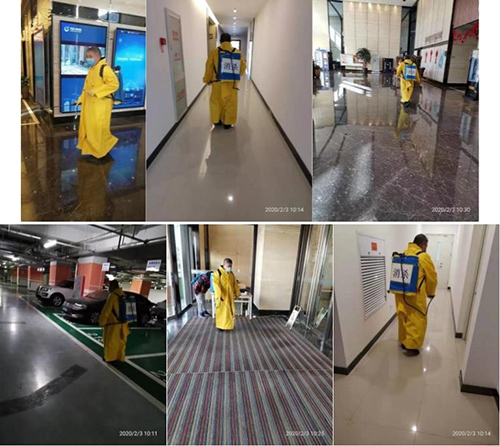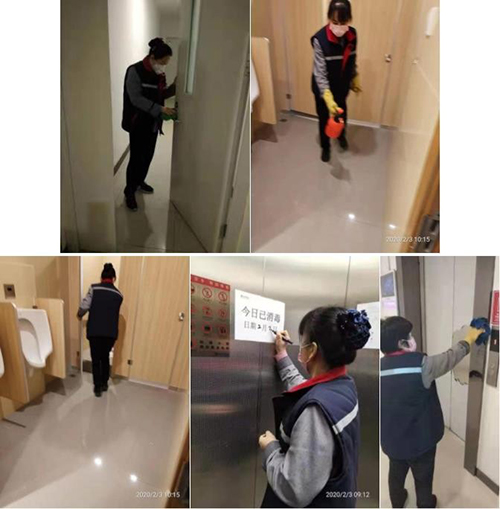1、對(duì)大堂、樓層公共走道和衛(wèi)生間進(jìn)行全面噴霧消毒每日3次;