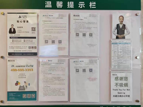 1、客服部對(duì)所有租戶及裝修戶發(fā)放疫情防范提示;