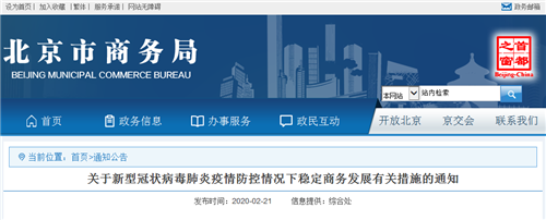 房訊網(wǎng)訊 2月21日,北京市商務局發(fā)布《關于新型冠狀病毒肺炎疫情防控情況下穩(wěn)定商務發(fā)展有關措施的通知》,深入貫徹落實市委、市政府關于新型冠狀病毒肺炎疫情防控工作部署,全力做好商務領域疫情防控工作,幫助企業(yè)經(jīng)營,服務市民生活,穩(wěn)定經(jīng)濟運行。