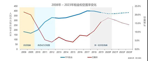 第四,租金進入階段性高位調(diào)整階段的大趨勢保持不變。由于疫情導致整體市場節(jié)奏的變化,且對于很多行業(yè)的一季度收入都有著災難性的影響,這將導致很多企業(yè)遇到現(xiàn)金流危機而出現(xiàn)經(jīng)營困難的情況。因此,在租戶遇到租金兌付危機時,整體市場租金依然會處于調(diào)整期,且受疫情影響租金短期調(diào)整幅度可能會加大。因此,受疫情影響,租金調(diào)整節(jié)奏大概率會持續(xù)到2020年底,從2021年初開始租金企穩(wěn)預期將會增強。