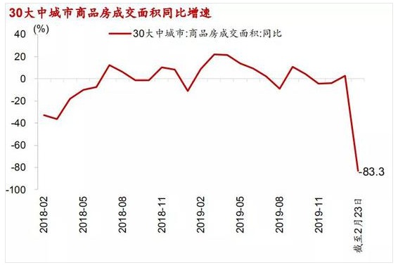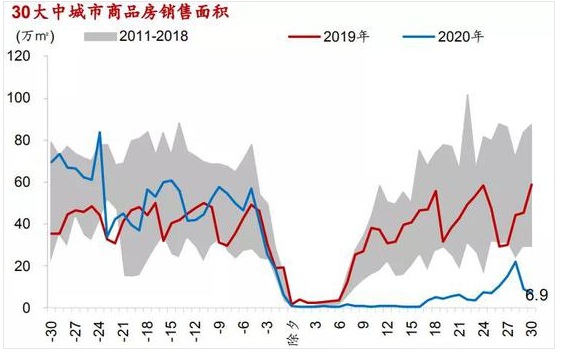 這主要是因為受疫情影響,1月26日中國房地產(chǎn)業(yè)協(xié)會發(fā)出倡議,號召房地產(chǎn)企業(yè)暫停售樓處銷售活動,疫情過后再行恢復。在此號召下,多地房地產(chǎn)業(yè)協(xié)會先后響應(yīng),發(fā)布公告暫停售樓處銷售活動。據(jù)不完全統(tǒng)計,截至1月末,已有60余個城市住建部門發(fā)布通知,要求暫停售樓處營銷活動。此外,部分地區(qū)甚至暫停房地產(chǎn)中介服務(wù)活動,例如門店暫停營業(yè)、不得組織現(xiàn)場看房等。在新冠疫情的沖擊下,這個新春的房地產(chǎn)銷售格外寂寥,特別是對三四線城市而言。