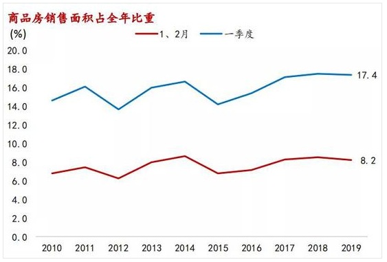 全年來看,新冠疫情對商品房銷售的影響或相對有限。新冠疫情爆發(fā)于1-2月商品房銷售的淡季,在疫情影響下,大多購房需求將會延后,因此疫情對商品房銷售的拖累主要體現(xiàn)在短期。一方面,1-2月商品房銷售面積在全年占比較少。從近5年數(shù)據(jù)來看,1-2月商品房銷售面積在全年占比平均為7.8%,而一季度商品房銷售面積在全年占比平均為16.3%。另一方面,若疫情過后經(jīng)濟如期反彈,市場主體信心快速恢復,購房需求將在疫情過后延遲釋放。