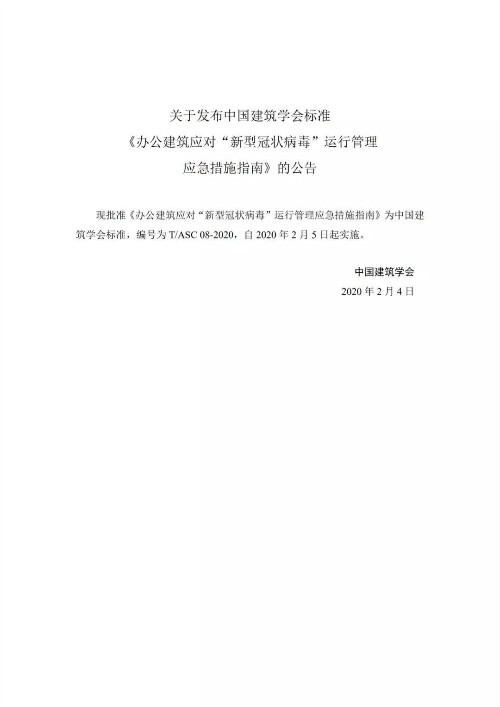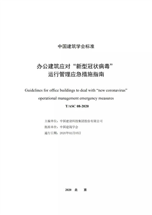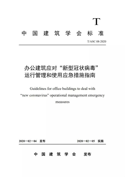 房訊網(wǎng)訊 2月4日,中國建筑學(xué)會(huì)發(fā)布公告,批準(zhǔn)《辦公建筑應(yīng)對“新型冠狀病毒”運(yùn)行管理應(yīng)急措施指南》為中國建筑學(xué)會(huì)標(biāo)準(zhǔn),編號為T/ASC 08-2020,自2020年2月5日起實(shí)施。
