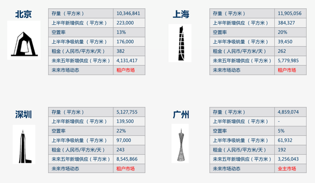 一線城市寫字樓狀況數(shù)據(jù)來源:戴德梁行