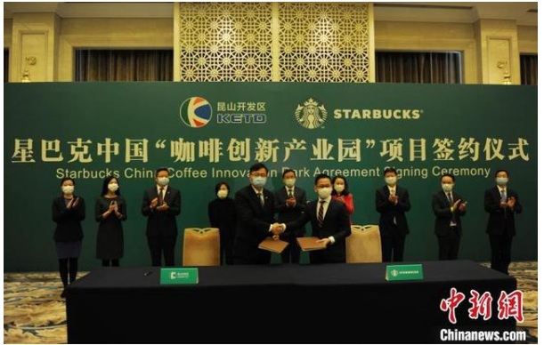 星巴克中國(guó)“咖啡創(chuàng)新產(chǎn)業(yè)園”,13日簽約落地江蘇昆山。黃瑩攝