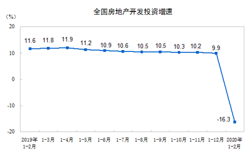 房訊網(wǎng)訊 據(jù)國家統(tǒng)計(jì)局16日發(fā)布的2020年1—2月份全國房地產(chǎn)開發(fā)投資和銷售情況顯示,1—2月份,全國房地產(chǎn)開發(fā)投資10115億元,同比下降16.3%。其中,住宅投資7318億元,下降16.0%。