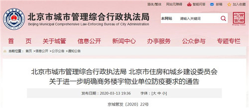 北京市城市管理綜合行政執(zhí)法局 北京市住房和城鄉(xiāng)建設(shè)委員會(huì) 關(guān)于進(jìn)一步明確商務(wù)樓宇物業(yè)單位防疫要求的通告