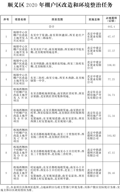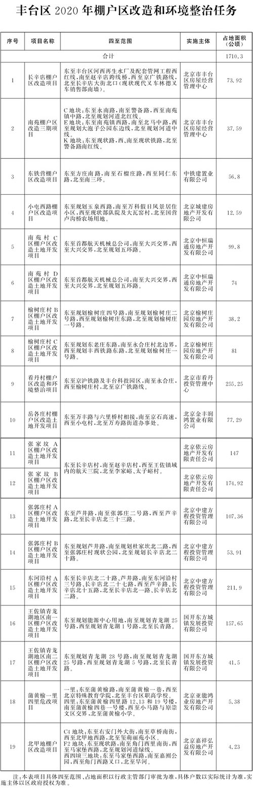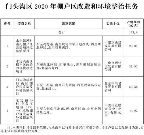 房訊網(wǎng)訊 3月30日,北京市政府辦公廳發(fā)布通知,公布《北京市2020年棚戶區(qū)改造和環(huán)境整治任務(wù)》。全市16個(gè)區(qū)共115個(gè)項(xiàng)目,占地面積7979公頃,2020年任務(wù)8686戶。