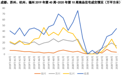 重點(diǎn)二線城市中,成都、蘇州復(fù)蘇動(dòng)力強(qiáng)勁、市場(chǎng)熱度迅速回升。而福州、杭州盡管數(shù) 據(jù)層面?zhèn)別周度成交量大幅反彈,但其實(shí)質(zhì)是年前充分蓄客的紅盤推貨拉動(dòng),市場(chǎng)整體仍存 在冷熱不均現(xiàn)象,后續(xù)周度成交量也出現(xiàn)了一定程度回調(diào)。