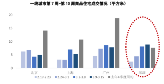 一線城市中深圳市場(chǎng)率先回暖。一、二手房的成交數(shù)據(jù)可直觀反映這一事實(shí),第十周深圳商品住宅成交量達(dá)到8.8萬(wàn)方,明顯高于去年四季度周均值水平,二手房周成交量達(dá)15.27萬(wàn)平方,環(huán)比增漲18%,達(dá)到疫情前周平均成交量7成水平。此外,近期深圳商務(wù)公寓屢開(kāi)屢罄現(xiàn)象也可佐證市場(chǎng)信心恢復(fù),3月7日,104套總價(jià)區(qū)間在2000萬(wàn)-5000萬(wàn)的太子灣云璽房源當(dāng)日售罄,3月16日,萬(wàn)科星城288套小戶型公寓開(kāi)盤七分鐘全部售罄。