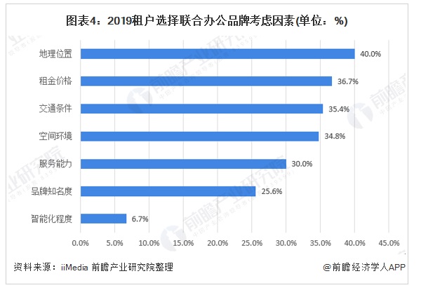 圖表4:2019租戶選擇聯(lián)合辦公品牌考慮因素(單位:%)