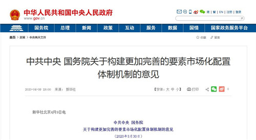關(guān)于構(gòu)建更加完善的要素市場化配置體制機(jī)制的意見