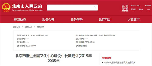 房訊網訊 4月9日,《北京市推進全國文化中心建設中長期規(guī)劃(2019年—2035年)》正式發(fā)布。