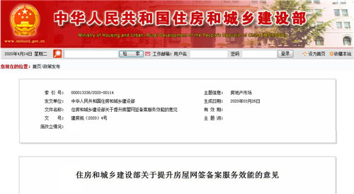 住房和城鄉(xiāng)建設部關(guān)于提升房屋網(wǎng)簽備案服務效能的意見
