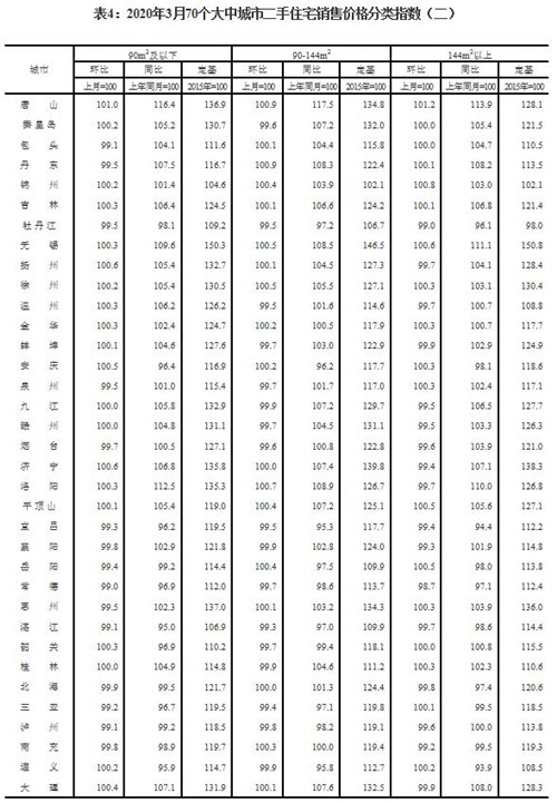 2020年3月份70個大中城市商品住宅銷售價格變動情況