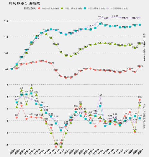 一線城市房?jī)r(jià)較快恢復(fù),二三四線城市房?jī)r(jià)均較為平穩(wěn)。緯房城市分級(jí)指數(shù)顯示,一線城市近3個(gè)月房?jī)r(jià)累計(jì)上漲1.47%,漲速穩(wěn)中略高。近3個(gè)月二線城市房?jī)r(jià)累計(jì)上漲0.59%,三線城市房?jī)r(jià)累計(jì)上漲0.75%,四線城市房?jī)r(jià)累計(jì)上漲0.28%,房?jī)r(jià)相對(duì)穩(wěn)定,未因疫情沖擊出現(xiàn)下降。